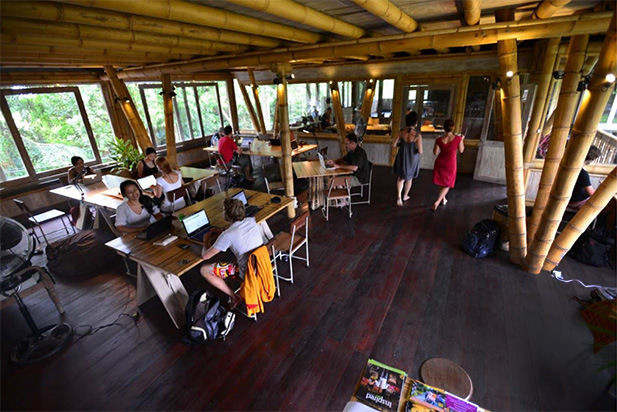นี่สิ “อรุณเบิกฟ้า นกกาโบยบิน” พื้นที่ทำงานท่ามกลางธรรมชาติสไตล์บาหลี นั่งชมทิวทัศน์มีรวงข้าวอยู่ตรง หน้า ผู้คนพกอุปกรณ์ไฮเทคเข้ามาในศูนย์รวมเทคโนโลยีแห่งนี้ ทั้งที่บาหลีขึ้นชื่อเรื่องสปา รีสอร์ทที่พักตากอากาศ ทำให้ Hubud กลายเป็น co-working space แห่งแรกที่ผสมผสานทั้ง 2 อย่างเข้าด้วยกัน เป็น “ความสมดุลระหว่างธรรมชาติและเทคโนโลยี” ก็ว่าได้