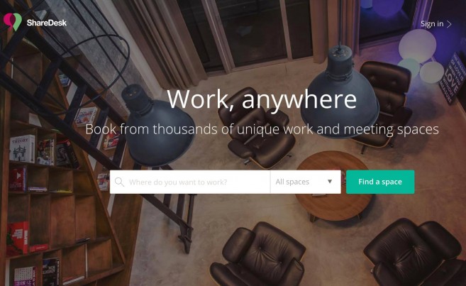 ก่อนอื่นขอแนะนำเว็บพระเอกของเราในวันนี้ sharedesk.net เว็บเดียวหาห้องทำงานได้ทั่วโลก แค่พิมพ์ชื่อประเทศ, ชื่อเมือง หรือชื่อถนนลงไป จากนั้นคลิก Find a space แล้วสังเกตหมุดสีฟ้า! (ถ้าไม่มีห้องทำงานในบริเวณนั้นจะขึ้นว่า “Sorry, there are no spaces matching your criteria.“)